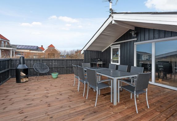 Feriehusets terrasse er for nyligt blevet udvidet, hvilket har resulteret i en stor, lukket terrasse med masser af plads til at nyde den friske luft. Her kan I også uden problemer lukke hundene ud.