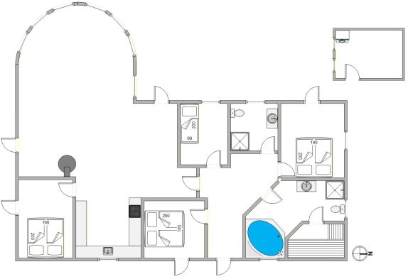 Når I skal forkæles, finder I spabad og sauna på det største af sommerhusets badeværelser. Her bliver hverdagens stress og jag hurtigt glemt – og I kan få varmen i det boblende vand. Begge badeværelser er med gulvvarme, så I ikke fryser fødderne. Praktisk er det store bryggers indrettet med vaskemaskine og tørretumbler – perfekt hvis strandhåndklæderne skal opfriskes.