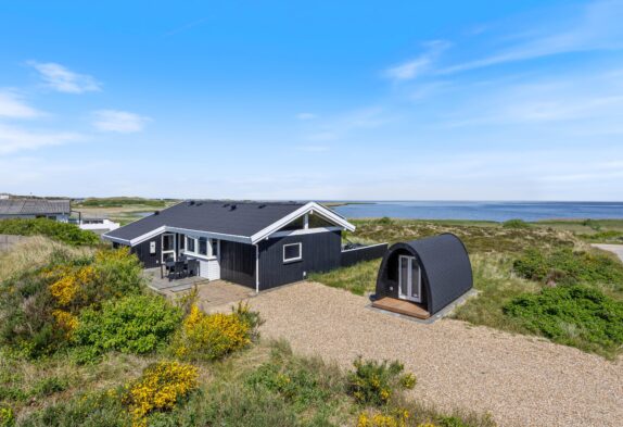 Hareklit ligger i Skodbjerge og er en af de få veje, som ligger på østsiden af vejen. Det betyder, at der fra feriehuset, som er beliggende på en klitgrund, er en helt fantastisk udsigt. I stuen er der glaspartier til tre sider, hvilket skaber en skøn panoramaudsigt over Ringkøbing Fjord og et utroligt dejligt lysindfald i stuen. Naturen kommer næsten væltende ind i stuen – uanset årstid, vejr og vind er det en fornøjelse at sidde her med en kop kaffe og bare nyde landskabet.