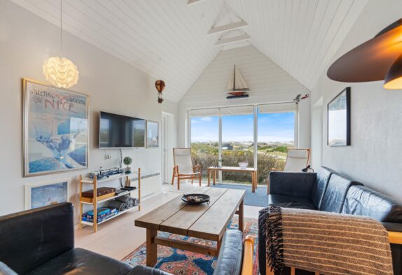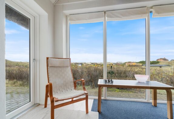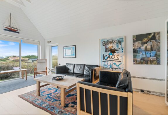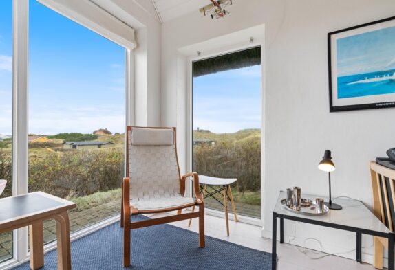 Feriehus med dejlig indretning og udsigt til smukke naturomgivelser. Omkring sommerhuset findes flere gode terrasser, så I kan nyde den smukke udsigt, den friske salte havluft, og hyggelige grillaftener. Og området med klitterne, stranden og Vesterhavet indbyder til gåture og udflugter. Det er ikke tilladt at have kat med i sommerhuset, men jeres 2 hunde er meget velkomne.