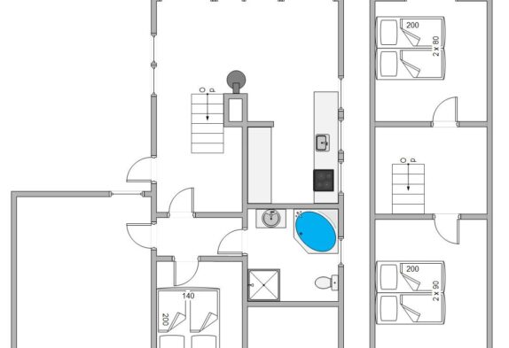 På badeværelset står hjørnespaen og indbyder til et par timers ren afslapning, hvor I kan geare helt ned og blive varmet godt igennem. Og har I børn med, vil de sikkert også elske at få lov til at plaske lidt rundt heri.