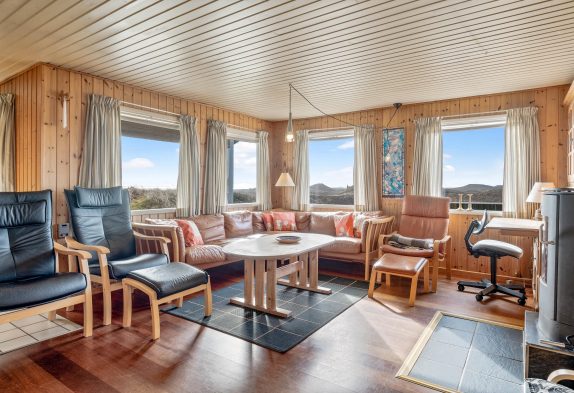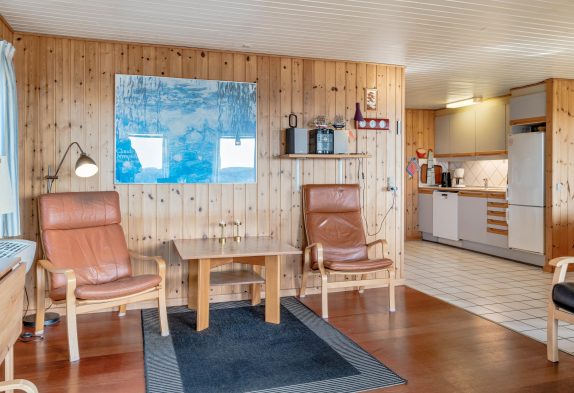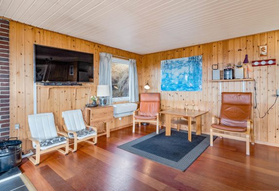 Mon ikke de fleste af os forbinder et træhus med ferie. Det naturlige materiale emmer af ro og afslapning. De rustikke trævægge i dette feriehus er ingen undtagelse. De giver varme og atmosfære til indretningen og formår at skabe en rigtig hyggelig feriestemning i sommerhuset.