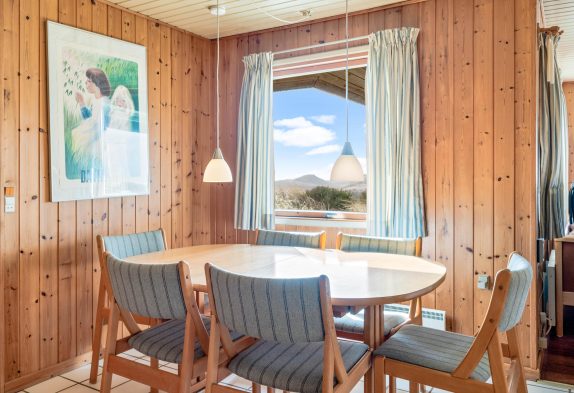 Dette klassiske sommerhus med brændeovn er noget helt særligt. Sommerhuset ligger i et utroligt smukt område og har desuden en skøn udsigt over Ringkøbing Fjord. Er du til smuk natur og vand, så er dette sommerhus med garanti noget for dig. Indretningen i feriehuset er en hyggelig blanding af gammelt og nyt i klare farver.