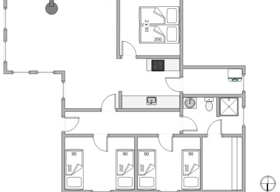 Her er plads til 6 feriegæster, som til natten kan fordele sig på 3 soveværelser, hvoraf det ene er indrettet med en dobbeltseng. De sidste 2 værelser er indrettet med 2 enkeltsenge på hver.
