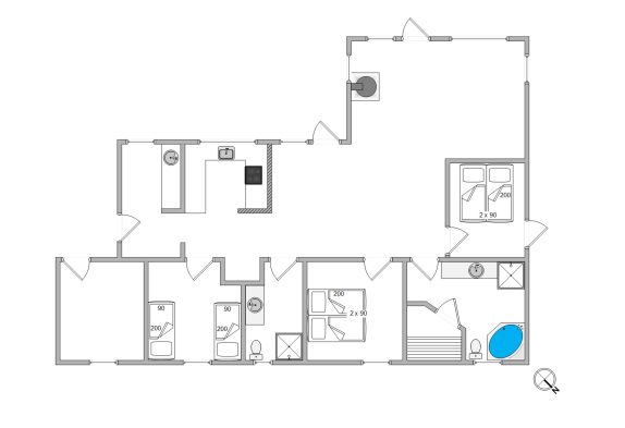Der er to flotte badeværelser, hvoraf det ene er med spabad og sauna, så I kan blive varmet godt igennem og få kroppen til at slappe helt af efter en dejlig tur ved stranden.
