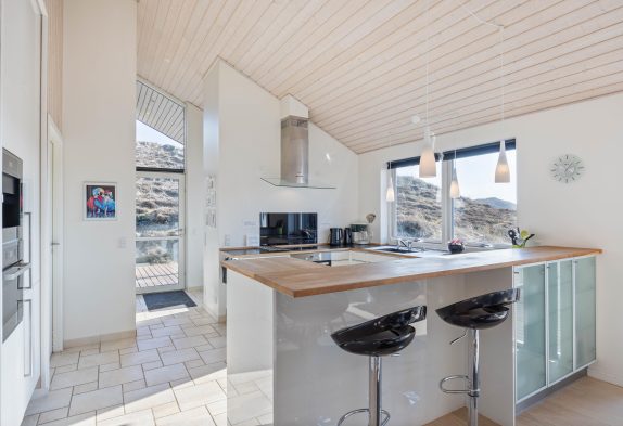 Og det virkeligt flotte og veludstyrede køkken vil med sikkerhed vække den indre kok og give jer lyst til at kokkerere lidt ekstra godt under ferien. Her i køkkenet er bl.a. installeret en Quooker (kogende vandhane) og en indbygget kaffemaskine.