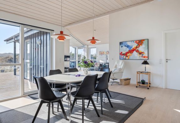 Feriehuset er moderne og stilrent indrettet, så det fremstår særdeles indbydende til en afslappende ferie.
