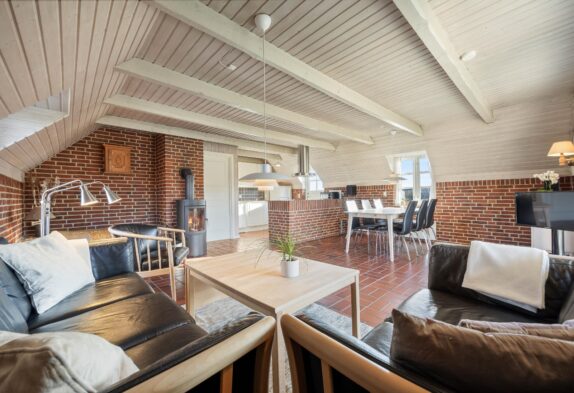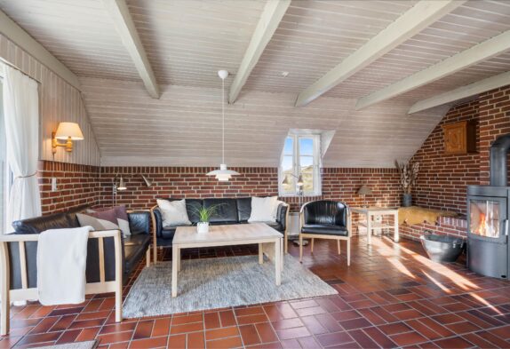 I stuen er der en hyggelig atmosfære med en brændeovn, der spreder varme og en hjemlig følelse på kølige aftener. Ligeså sikrer gulvvarmen på badeværelset en komfortabel oplevelse fra morgenstunden. Efter en lang dag med eventyr og udforskning er saunaen det perfekte sted til afslapning.