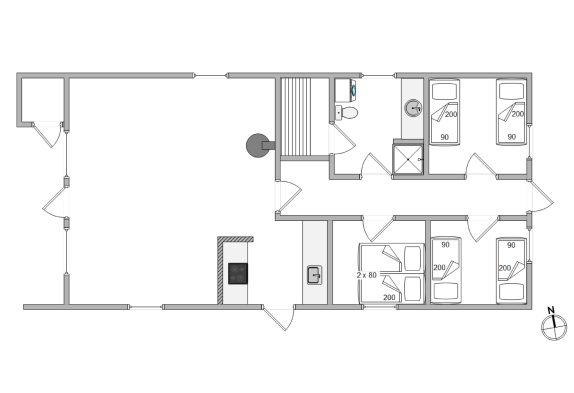 Sommerhuset byder på 3 soverum, som er indrettet med 1 dobbeltseng og 4 enkelte senge. Dette giver plads til 6 personer, så både familie og venner kan nyde samvær i de indbydende omgivelser.