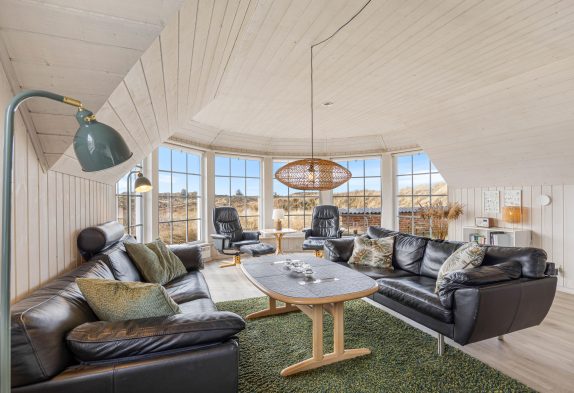 Her har I et feriehus, som er flot og indbydende inde såvel som ude. Der er en dejlig stue med store vinduer, der giver et godt lysindfald og mulighed for at nyde udsigten over naturgrunden.
