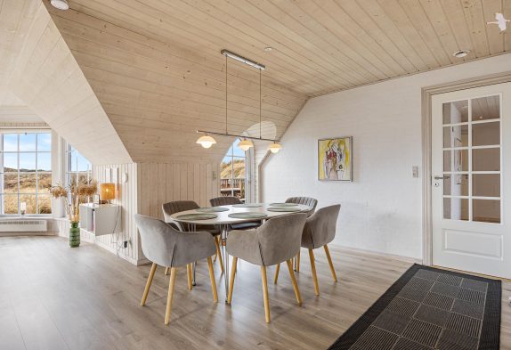 Feriehuset ligger på en stor naturgrund med omkringliggende klitter, der sørger for både læ og privatliv. På den måde kan I uforstyrret nyde jeres ferie og dejlige gåture i området ved Ringkøbing Fjord.
