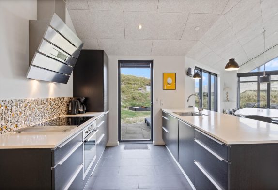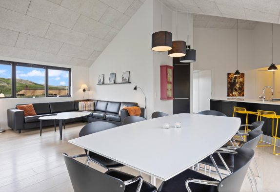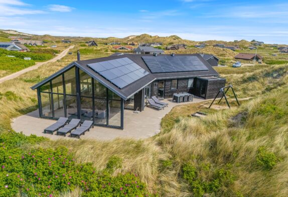 Et yderst lækkert sommerhus beliggende på en kuperet klitgrund i Haurvig kun 150 meter fra Vesterhavet. Et rummeligt sommerhus med al tænkelig komfort og en gennemtænkt indretning. Her får I et stort alrum, hvor hele familien kan samles, spa og sauna, to soveværelser med eget bad og tv. Ankommer I med el-bil, kan I oplade den her såfremt eget kabel medbringes.