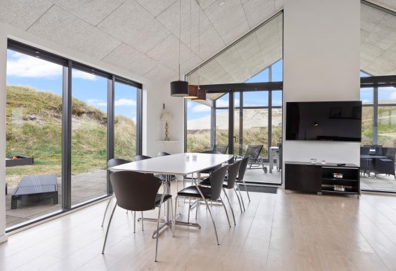 Oplev naturen, fjorden, hedeområderne og klitterne lige udenfor døren. Luksussommerhuset med den skønne beliggenhed er kun 150 meter fra Vesterhavet og midt i den skønne natur – og området her er kendetegnet ved gode cykelstier – igennem sommerhusområdet – væk fra vejen og lige bag klitterne.
