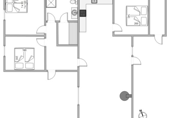 Sommerhuset byder plads til 6 feriegæster, som kan fordele sig på de 3 gode soverum, når det bliver sengetid efter en oplevelsesrig feriedag. Der er 2 værelser med dobbeltsenge, mens det sidste værelse er indrettet med en køjeseng. I sommerhuset er der et fint badeværelse med gulvvarme og sauna, hvor I kan nyde varmen efter en frisk gåtur ved vandet.