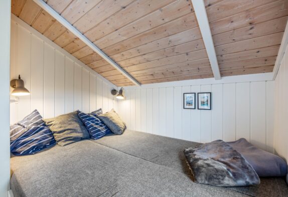 Ved siden af brændeovnen i stuen er en lille alkove med forhæng, der kan trækkes for. Alkoven er en yndet plads for de fleste børn, der elsker at bruge pladsen som en lille hule. Det er også en dejlig plads, hvor man kan slappe af med en gå bog.
