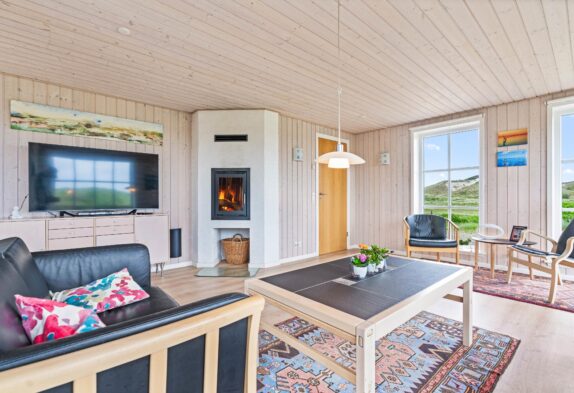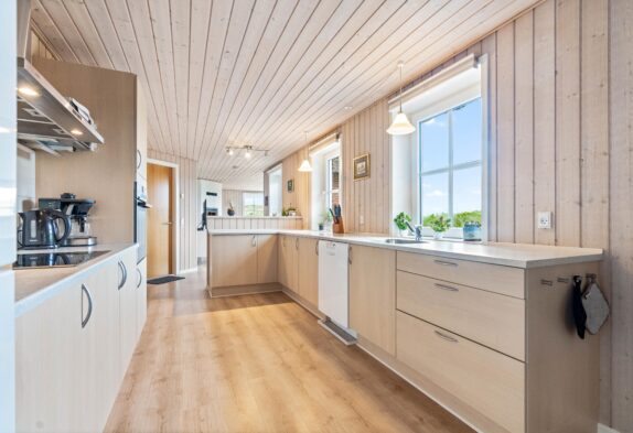 Feriehuset danner de perfekte rammer om en dejlig ferie med familien, hvor I bare skal koncentrere Jer om hinanden og slappe af. Der er et dejligt køkken med masser af skabs- og bordplads, og dermed indbyder det til hyggelig madlavning i fællesskab. I stuen kan hele familien samles til hyggelige stunder, mens brændeovnen knitrer og spreder varme.