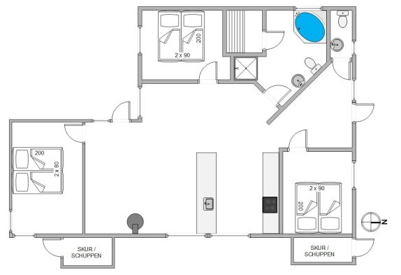 Huset er lyst og indbydende, og er praktisk indrettet med køkkenet i åben forbindelse med stuen. Her er alt, hvad man kan ønske i hårde hvidevarer, et godt badeværelse med boblebad og sauna, samt 3 soveværelser med boksmadrasser. Her er desuden installeret trådløst internet, så man kan bevare kontakten med omverdenen – selv om man har ferie.