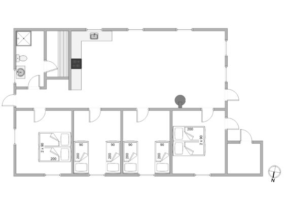 Sommerhuset har 4 komfortable værelser I kan nyde når det er tid til at lade batterierne op – 2 værelser med dobbeltsenge og 2 værelser med enkeltsenge, som sikrer jer en god nats søvn.