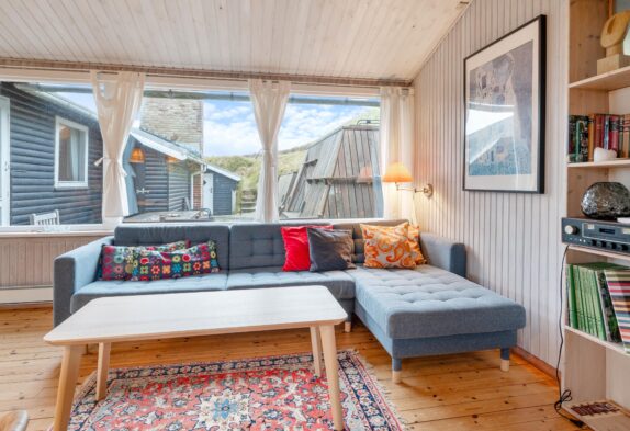 Feriehuset ligger i Årgab, hvor der hverken er langt til hav, fjord eller fiskerbyen, Hvide Sande.