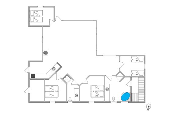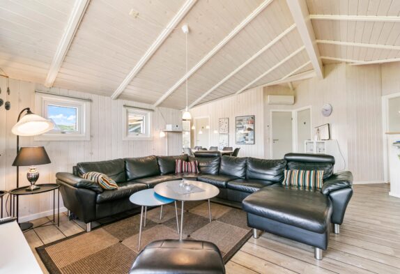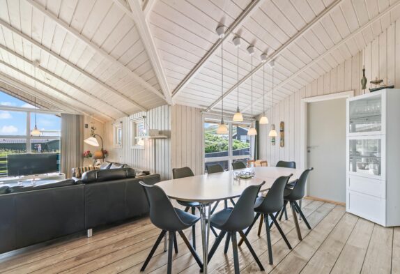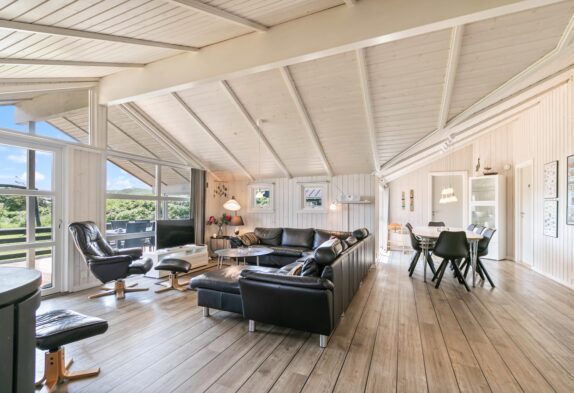 Med højt til loftet og store gulv til loft vinduer fremstår sommerhuset både lyst og åbent. Tag på ferie med din egen familie + jeres venner, hvor begge familier kan tage et kæledyr med. Her kan i nemlig sagtens holde ferie samlet, da huset er 108 kvadratmeter og der er to badeværelser. På det ene badeværelser finder I en skøn sauna efterfulgt af et opfriskende spabad.
