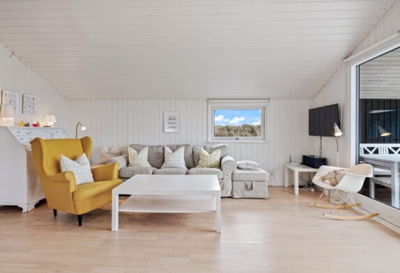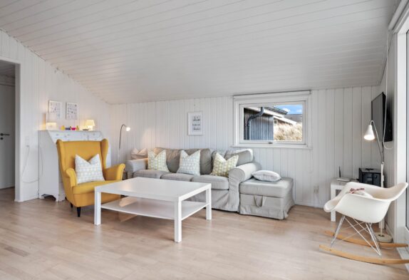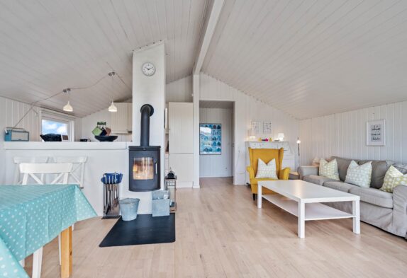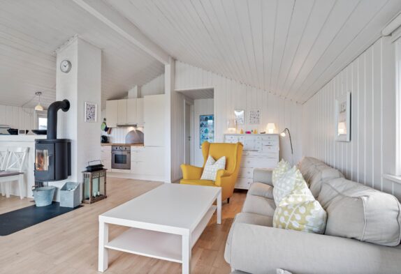 Dette lyse og indbydende sommerhus byder dig velkommen med den charmerende og indbydende indretning. Her kan 5 personer holde ferie i lyse og indbydende rammer. De tre soveværelser er indrettet med henholdsvis 2 dobbeltsenge og en sovesofa. Pænt badeværelse med gulvvarme og bruseniche. Køkken med alt i hårde hvidevarer i åben forbindelse med en særdeles dejlig opholdsstue hvorfra der er udgang til en stor terrasse, hvoraf en lille del er overdækket. Huset er udstyret med energibesparende varmepumpe og har gratis trådløst internet.