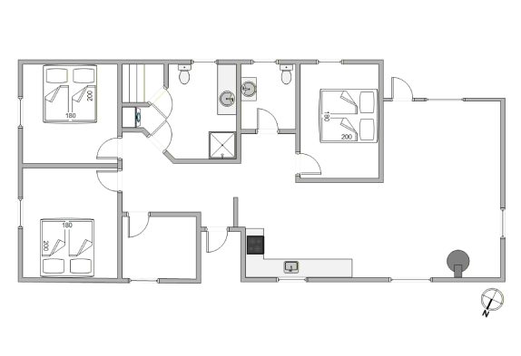Dette flotte og velindrettede sommerhus vinder absolut ved nærmere bekendtskab. Trods sit beskedne ydre, har huset en flot og indbydende indretning, med store lyse rum og pæne møbler. Huset har 3 store soveværelser med dobbeltsenge. Stort flot badeværelse med gulvvarme og indgang til sauna. Desuden gæstetoilet med gulvvarme. Det store køkken står i åben forbindelse til spisestue og stue. Overalt i huset er der trægulve.