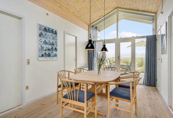 Utroligt skønt sommerhus med en af de smukkeste beliggenheder i området Årgab syd for Hvide Sande. Huset ligger højt på en klit og alligevel helt ugeneret og med fantastik flot udsigt. På terrassen mod øst er der som regel læ og her har du en pragtfuld udsigt mod Ringkøbing Fjord. På den delvist overdækkede og naturligt afskærmede terrasse mod vest har du første parket til klitten og det smukke landskab.