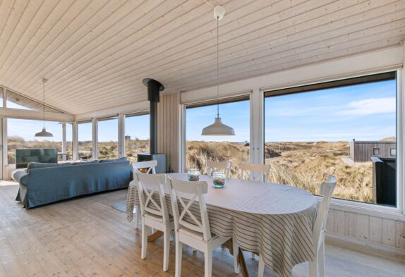 På en klittop i Søndervig, kun 150 meter fra den hvide sandstrand, ligger dette skønne feriehus. En enkel og hyggelig indretning sætter den helt rigtige feriestemning, og der er havudsigt både fra stuen og terrassen. Spa og sauna giver jer mulighed for lidt ekstra selvforkælelse.