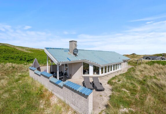 Da feriehuset ligger for enden af en lille sidevej, vil I uforstyrret kunne nyde ferien. Og da der er gode terrasser mod både øst, syd og vest, har I god mulighed for at sidde ude og nyde roen og naturen hele dagen. På terrassen i vest er der endda lavet en læmur, som afskærmet for vinden, men som også sørger for privatliv, når I ligger ude og soler Jer eller nyder en hyggelig grillaften.