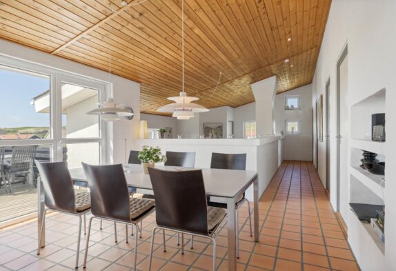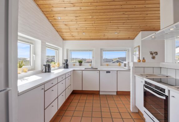Feriehuset er dejligt og praktisk indrettet, så du kan nyde en rigtig dejlig ferie. I køkkenet har du god skabs- og bordplads, når du laver mad. Og da det er i åben forbindelse med spiseafdelingen, er det dejligt rummeligt og perfekt til hyggelige stunder med familien.