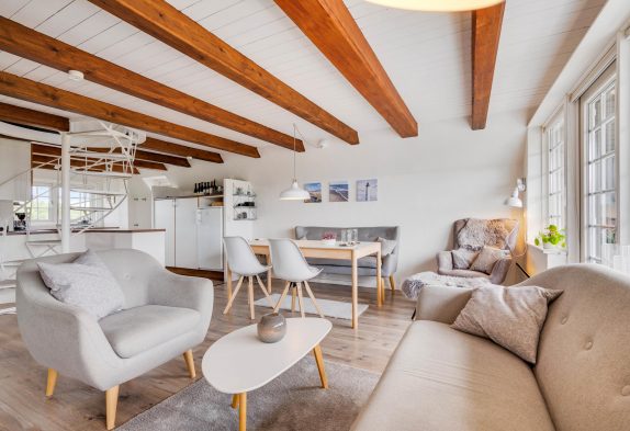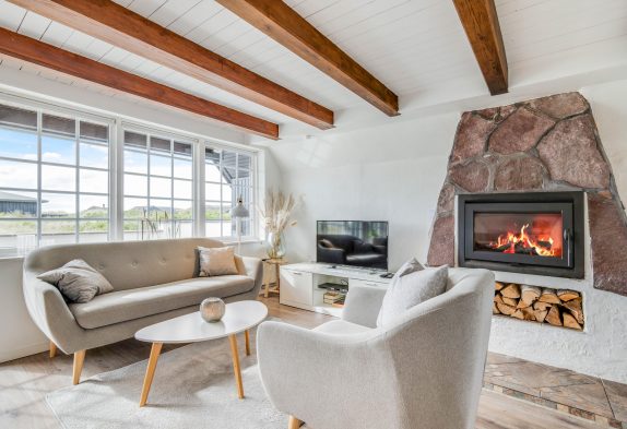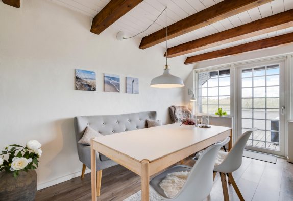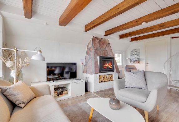 Et rigtig dejligt og smagfuldt indrettet sommerhus i 2 plan, som er renoveret med sans for detaljerne i 2021. Køkkenet står i åben forbindelse med den hyggelige stue. Her finder I bl.a. husets flotte, indbyggede brændeovn, som giver både hygge og dejlig varme. Stuen er smagfuldt indrettet. Her er fladskærms-TV, DVD og gratis trådløst internet. Det renoverede badeværelse har bruseniche, vaskemaskine og gulvvarme. Ovenpå er husets 2 soveværelser, begge med gulvtæppe, skrå vægge og synlige bjælker. Det ene soveværelse har 2 enkeltsenge og det andet har en dobbeltseng samt udgang til altan. Som et ekstra plus har Tingodden 108 også en energibesparende varmepumpe.
