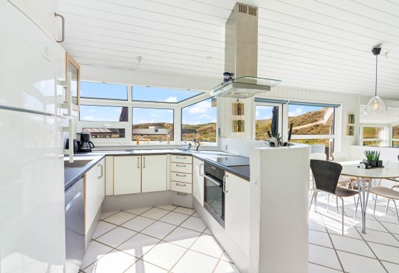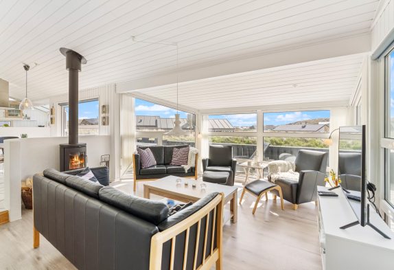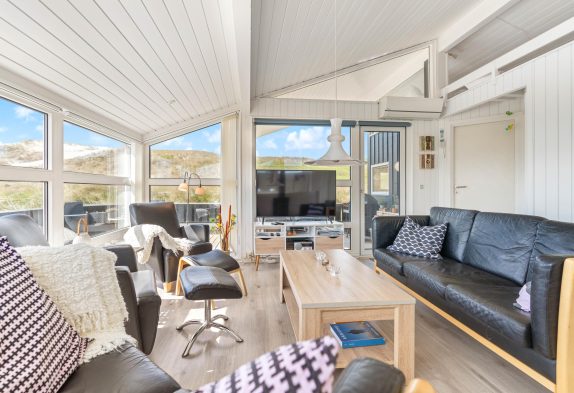 Dette skønne sommerhus ligger på en helt enestående 1.200 m2 stor naturgrund tæt Årgab strand, et af de mest attraktive sommerhusområder på Holmsland Klit. Huset er på 88 m2 og er lyst og smagfuldt indrettet og det er et lav-energi hus. Der er plads til 6 personer i 3 soveværelser og en hems. Alle værelser er med dobbeltsenge og trægulve. Huset har to dejlige badeværelser, begge med gulvvarme og bruseniche. I det store badeværelse finder I endvidere et lækkert hjørnespabad samt indgang til husets skønne sauna. Køkkenet vender mod syd, og herfra er der en enestående udsigt over klitlandskabet. I køkkenet er der bl.a. opvaskemaskine, mikroovn og en 50 liters fryser. I forbindelse med køkkenet finder I den store spiseafdelingen med plads til alle. Stuen befinder sig et trin ned fra spisestuen. Her har I et flot lysindfald fra de store vinduespartier. I den meget smagfuldt møblerede stue finder I både fladskærms-TV, DVD-afspiller og en hyggelig brændeovn. Der er desuden vaskemaskine, tørretumbler og gratis trådløst internet i dette dejlige sommerhus.