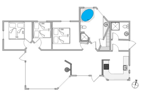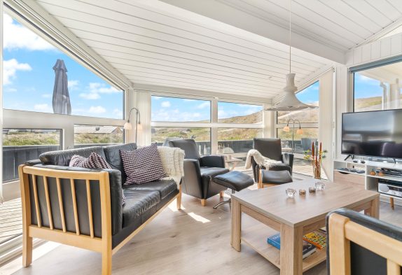 Feriehuset har en utrolig skøn, lukket og delvist overdækket terrasse mod syd og sydvest, som er anvendelig det meste af dagen. Her finder I naturligvis havemøbler, liggestole og en grill. Den skønne naturgrund er meget kuperet, og huset er placeret naturligt i læ af en klit.