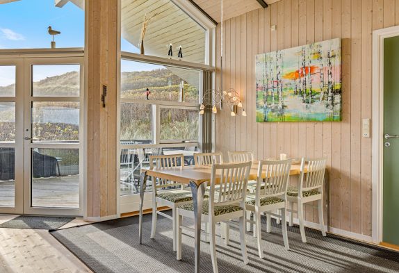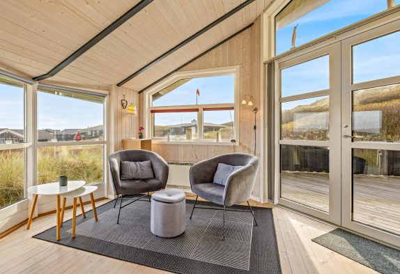 Der er lyse trægulve, lyse vægge og loft til kip i hele sommerhuset. 2 af feriehusets i alt 3 soveværelser er med 2 enkeltsenge og det sidste soveværelse med dobbeltseng. I det flotte badeværelset fra 2021 er der bruseniche, gulvvarme og vaskemaskine.
