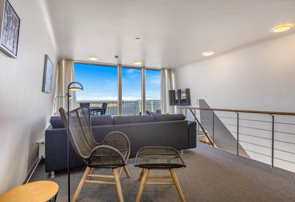 Der er 2 skønne terrasser på husbåden. En sydvendt i forbindelse med indgangspartiet, og en lukket terrasse på 1. sal med enestående panoramaudsigt over byen, havnen og Ringkøbing Fjord. Slå jer ned i havemøblerne eller på en solvogn og nyd denne udsigt med en god kop kaffe.