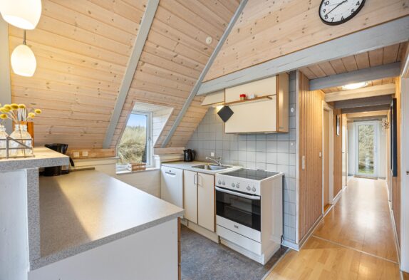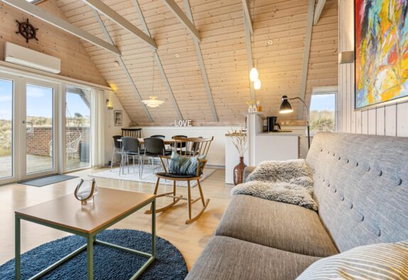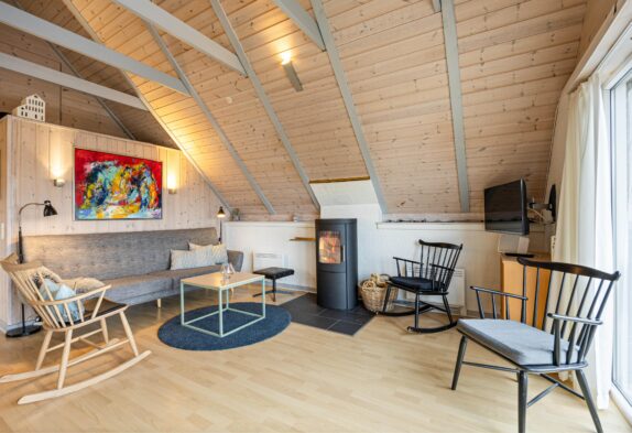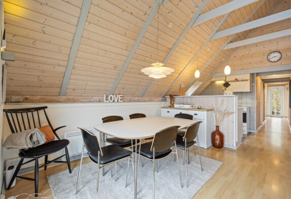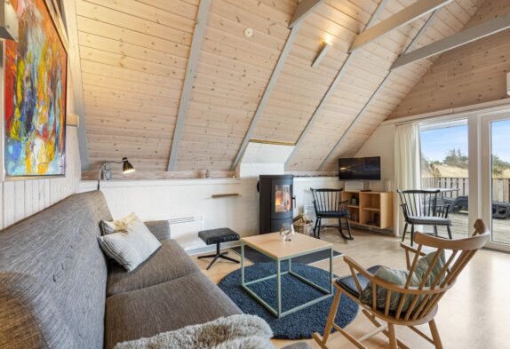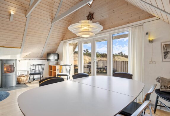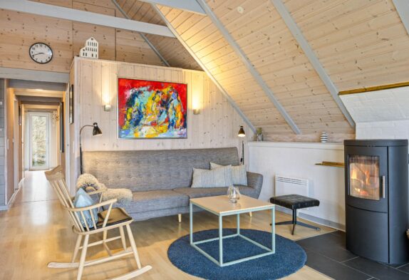 Samlingspunktet bliver det hyggelige og rummelige alrum, med loft til kip. Her er køkkenet, stuen og spisestuen er i åben forbindelse, så der er mulighed for at nyde tiden med hinanden, selvom der både ses tv, spilles brætspil og laves mad. Rummet kan I med fordel varme op med den energibesparende varmepumpe eller tænde op i brændeovnen, der især er skøn på de køligere dage. Fra stuen kan I også slå dørene op ud til den solskinsrige terrasse.