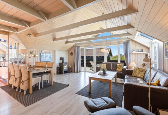 Derudover er der en rummelig stue, hvor du kan se en god film eller læse en spændende bog, mens brændeovnen spreder varme og hygge. På det store badeværelse er der også spabad og sauna, hvor du kan forkæle krop og sjæl, eller lade børnene plaske i de varme bobler.