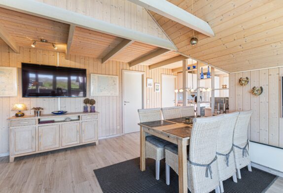 Feriehuset er flot og lyst indrettet, så det fremstår indbydende til en dejlig familieferie. I hjertet af feriehuset er der indrettet en hyggelig spiseafdeling, hvor du også udover måltiderne kan hygge dig med familien og spille spil, tegne og planlægge feriens udflugter. Rygning er tilladt i dette feriehus.