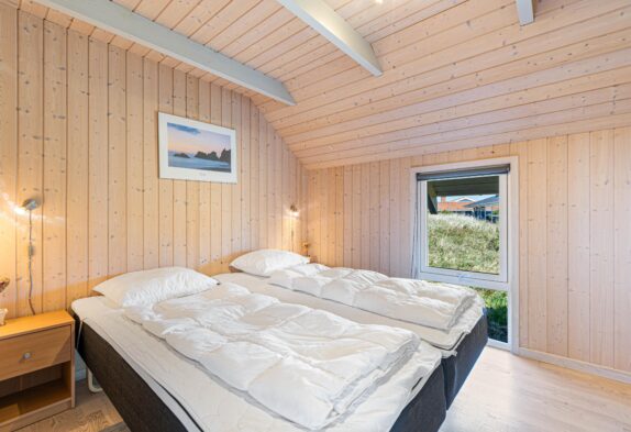 Dette dejlige feriehus ligger på en naturgrund med udsigt til Lyngvig Fyr, der er omgivet af et fredet hedeareal. Så her kan du nyde en afslappet ferie med familien med gåture i naturen og til stranden. I feriehuset er der også spabad og sauna, hvor både store og små kan hygge sig. I dette feriehus er rygning tilladt.
