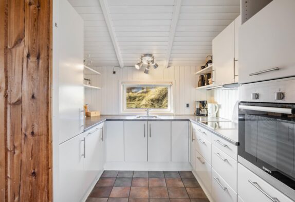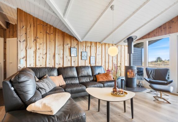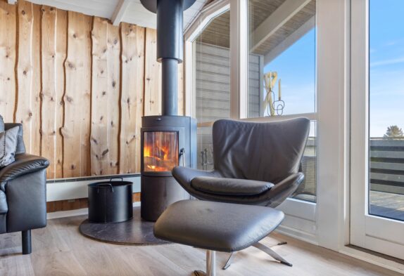 Derudover er der et lyst og rummeligt køkkenalrum, hvor I har den fine udsigt til fjorden. Her er der komfortable møbler og et veludstyret køkken til at medvirke til en vellykket ferie. Brændeovnen og den energibesparende varmepumpe sørger for en behagelig temperatur.