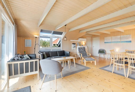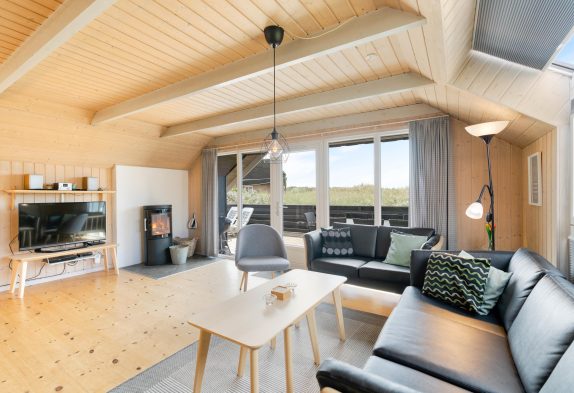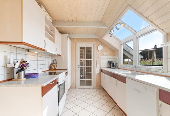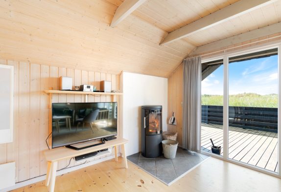Huset har mange af de moderne faciliteter der bliver efterspurgt, kombineret med en fred og ro der tilbydes i dette område, som kan være medvirkende til en skøn ferie ved Vestkysten. I sommerhuset er køkkenalrummet husets hjerte, her vil størstedelen af jeres hygge stunder formegentlig foregå. Her kan I nyder varmen fra brændeovnen. I det funktionelle køkken er der alle de nødvendige redskaber for at lave en lækkert måltid, mens man nyder den skønne udsigt.