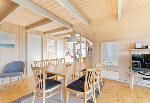 Det charmerende og hyggelige sommerhus blev bygget i 2003, og renoveret i 2020. Sommerhuset fremstår derfor lyst og enkelt i indretningen, med en klassisk møblering. Det er specielt velegnet til børnefamilier, og har man en hund med, er huset også indrettet til dette.