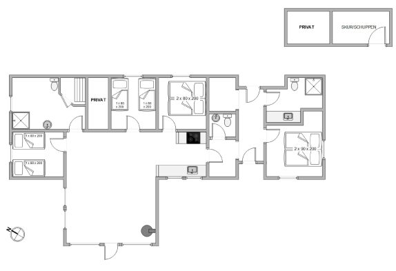 Højdepunktet i dette hus er med garanti det ene badeværelse. Her finder i både en rummelig sauna og et lækkert spabad, som kan nydes efter en kølig gåtur ved stranden. Der er 2 badeværelser i huset og et gæstetoilet, så derfor undgår i køen til brusebadet om morgenen. Alle badeværelserne er også udstyret med gulvvarme.