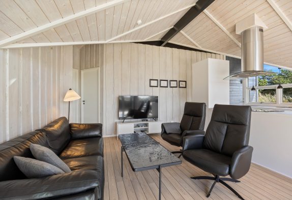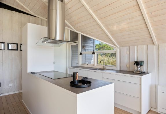 Dette sommerhus på Fyrmarken er et godt bud på et dejligt, familievenligt sommerhus, der ligger i det naturskønne område. Indretningen i det 76 m2 store hus er lys og indbydende. Det store vinduesparti, som er placeret på husets ene endegavl giver et utroligt dejligt lysindfald i indretningen, som skaber en varm og indbydende stemning i det store alrum. Alrummet ligger i åben forbindelse til husets køkken, og det er her ferien starter.