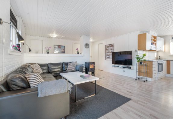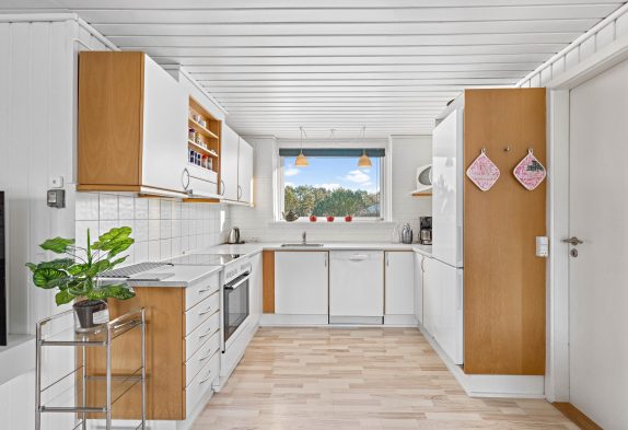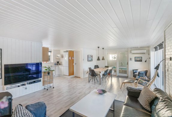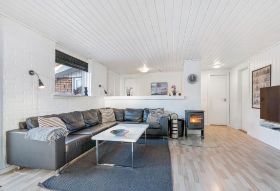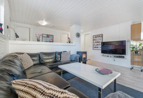 Køkkenet er udstyret med opvaskemaskine, så I slipper for at tage opvasken i hånden og i stedet kan bruge tiden med de mennesker, I holder af. Køkkenet ligger i forbindelse med stuen, hvor der er en brændeovn – perfekt til at give den klassiske sommerhusstemning. I stuen er der også fjernsyn, så I rigtig kan hygge i sofaen om aftenen. Hele opholdsrummet opvarmes af en energibesparende varmepumpe.I hele huset er der gratis trådløst internet.