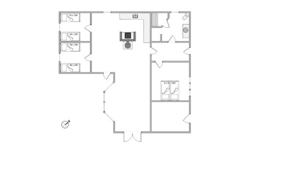 Det smukke bjælkehus på Lyngvejen er perfekt indrettet til en familie med børn. Sommerusets største soveværelse er med dobbeltseng og er placeret ved badeværelset, som har en dejlig sauna. De resterende to værelser er med enkeltsenge og er placeret på den modsatte side af køkken- alrummet. På den måde kan I lave en forældre- og børneafdeling i huset.