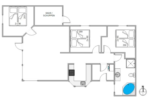 På badeværelset finder I jeres helt eget spabad, og her kan I forkæle jer selv og nyde feriedagene ekstra meget.