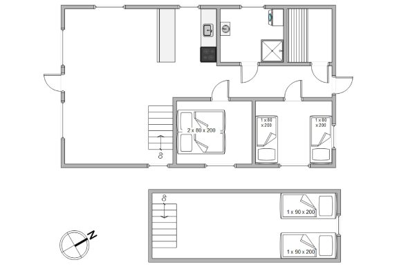 Et lille fint, charmerende feriehus med sten og strå, i en byggestil der pryder området og er med til at give området karakter. Dette feriehus er velholdt og rigtig hyggeligt indrettet med bl.a. sauna og internet. Huset råder over 6 sovepladser, de 2 af dem er i den “hulelignende” hems med vindue forenden. Et sted børn vil kunne tilbringe mange timer. I den hyggelige stue med åbent køkken, kan familien samles og hygge sig omkring brændeovnen.