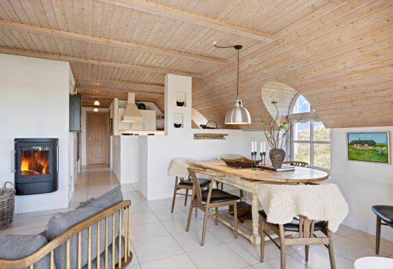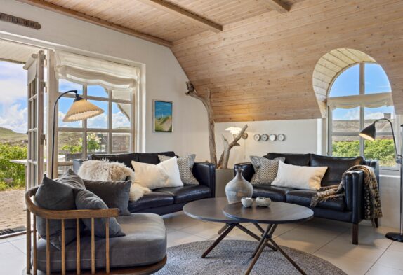 Med førsteklasses beliggenhed ud til hedearealer og kun 2 minutters gang fra stranden ligger dette smagfulde og velindrettede feriehus. Her kan du helt uforstyrret nyde ferien i fantastisk dejlige omgivelser – både inde og ude. Fra terrassen er der panoramaudsigt og man kan høre Vesterhavet.