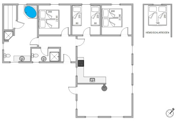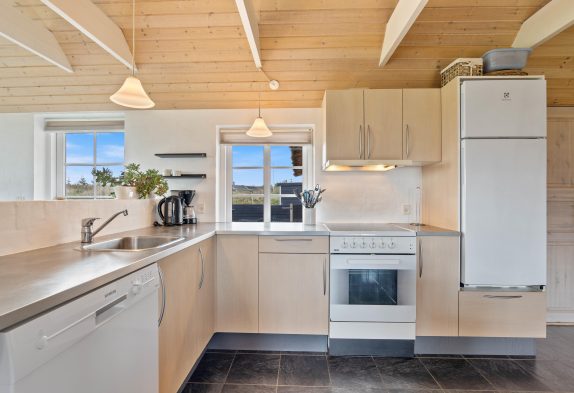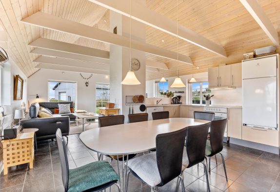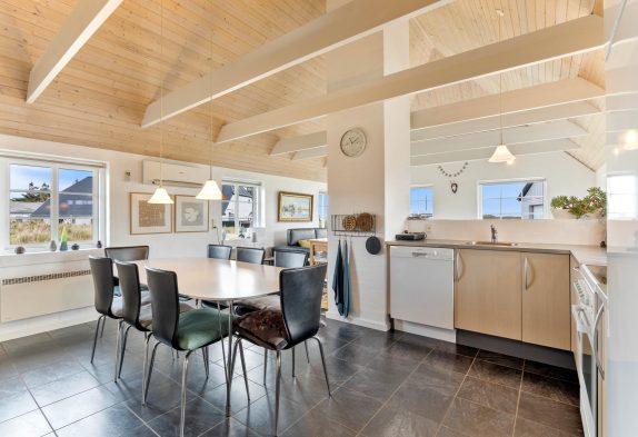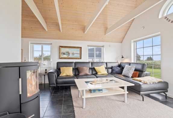 Hvis børnene ønsker at være for sig selv eller spille spil, mens de voksne snakker, er hemsen helt ideel. Huset har praktiske klinkegulvemed gulvvarme i køkken og stuen, så her er det ingen sag at have børn med. Den flotte brændeovn skaber både en god varme og masser af hygge i stuen, og efter en tur til havet er der dømt rigtig ferie med den tændt og god musik i baggrunden.